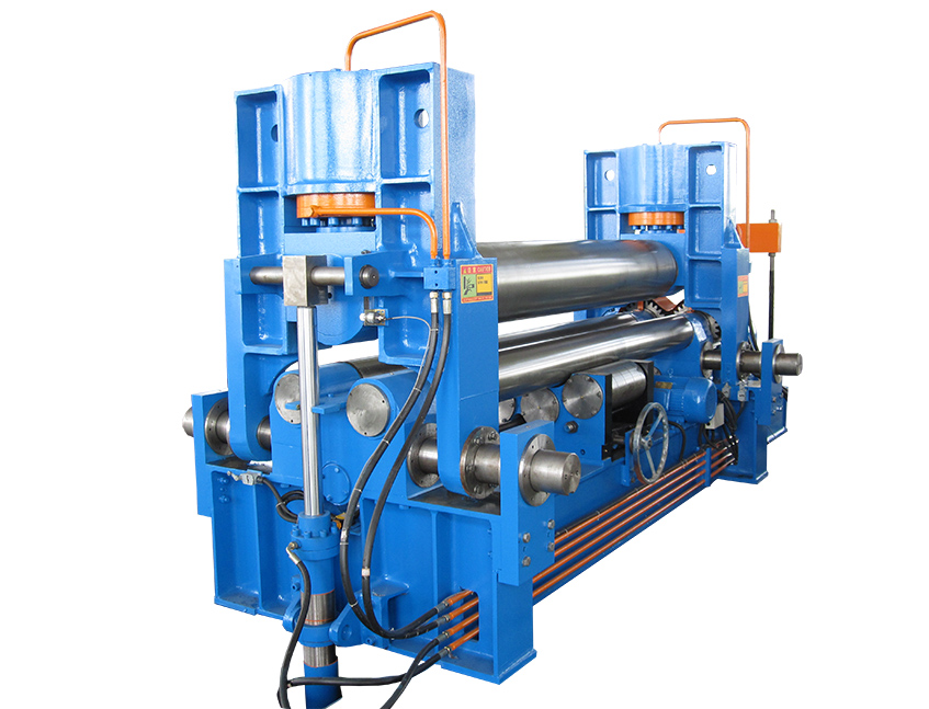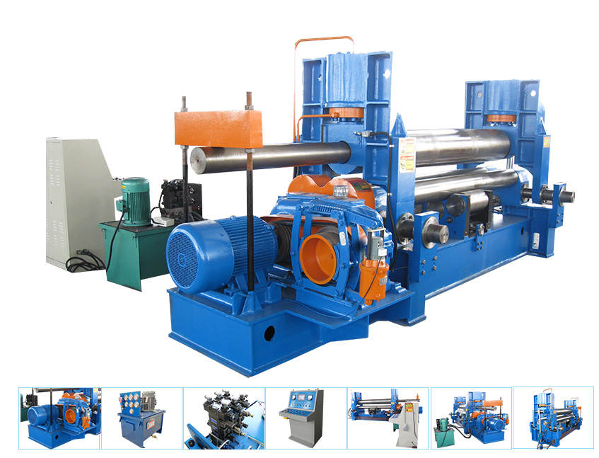 W11SNC萬能式三輥卷板機是一種雙夾板彎板機。 上輥為液壓驅動。 上輥可水平和垂直調節,兩個下輥是固定的。 所有合金鋼輥均經過感應淬火和熱處理。 經過感應淬火處理后,所有的輥都將被研磨和拋光。