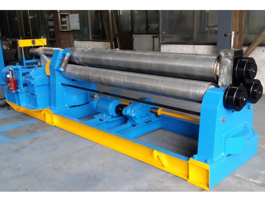 W11對稱卷板機(jī)是全機(jī)械對稱式三輥卷板機(jī)。 三個(gè)滾筒全部固定,像金字塔一樣放置。