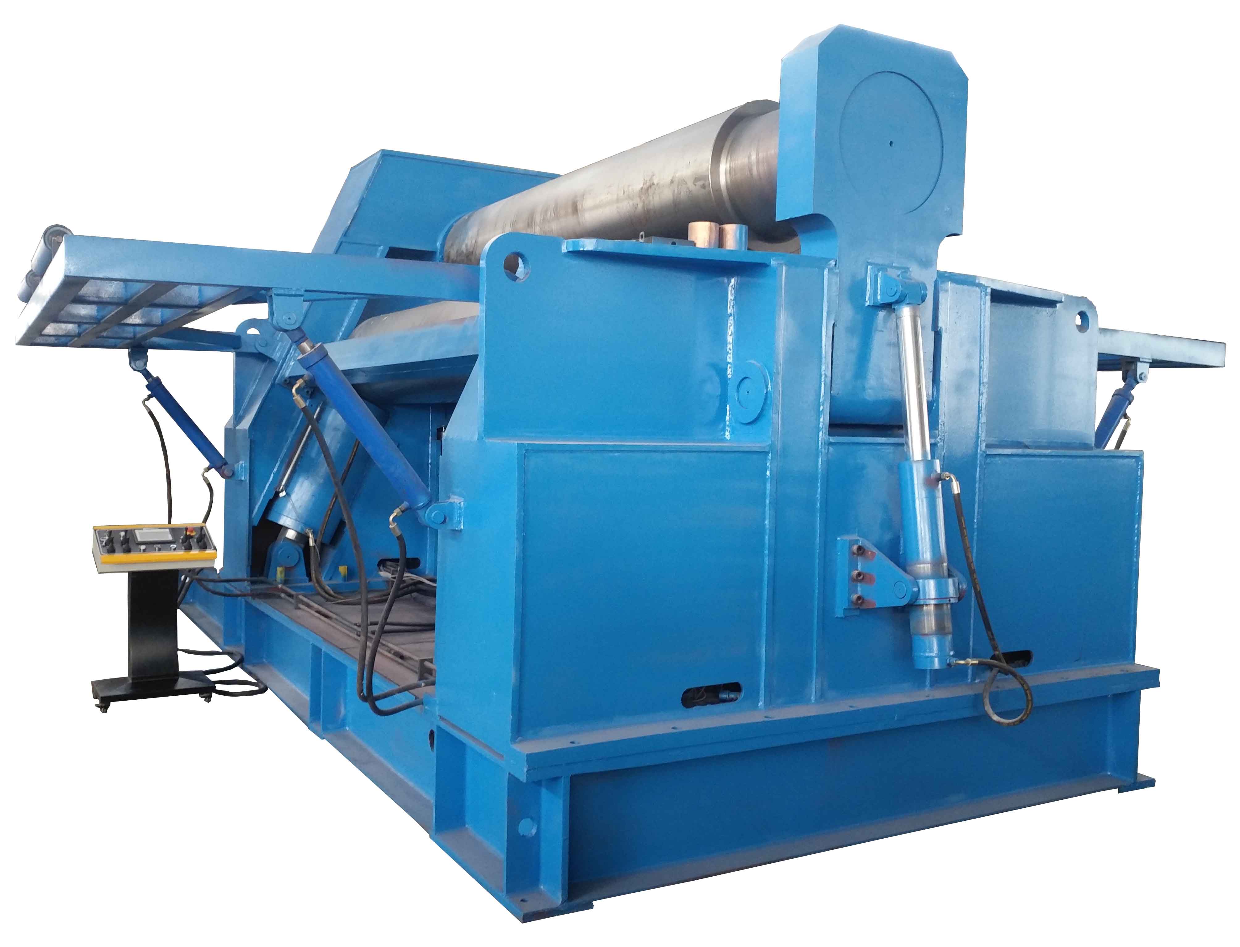 T4-6T3000W Plate Bending Machine is a type of double pinch plate bending machine. Each of the rollers is separate driven. Rollers rectilinear slide ways coated with antifriction material, no maintenance, suit to heavy duty loading, smooth and stable positioning. Spherical roller bearings are equipped on the rollers. All of the rollers in alloyed steel are induction hardening and heat treatment. All of the rollers will be grinded and polished after induction hardening treatment.